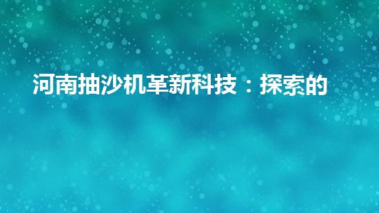 電抽沙機革新設計,提升效率!沙設備關鍵詞解析及市場前景探索